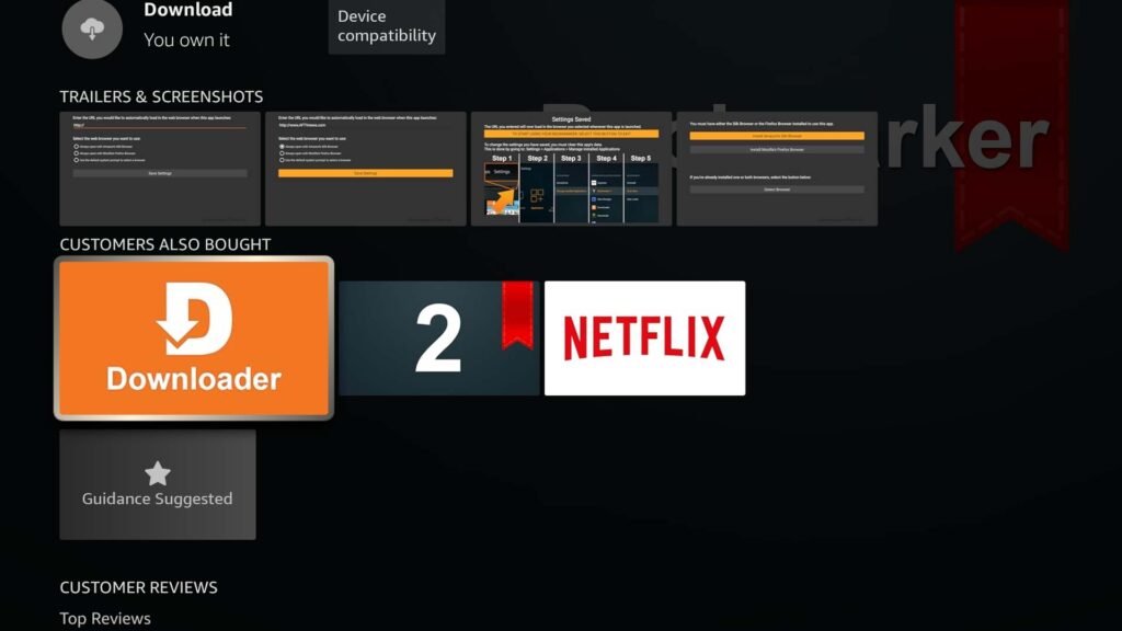 If you open an app related to Downloader, scroll down to the “Customers Also Bought” section. There’s a good chance Downloader will appear in that list. Apps you can check include Bookmarker, Developer Options, VLC, and Emby.